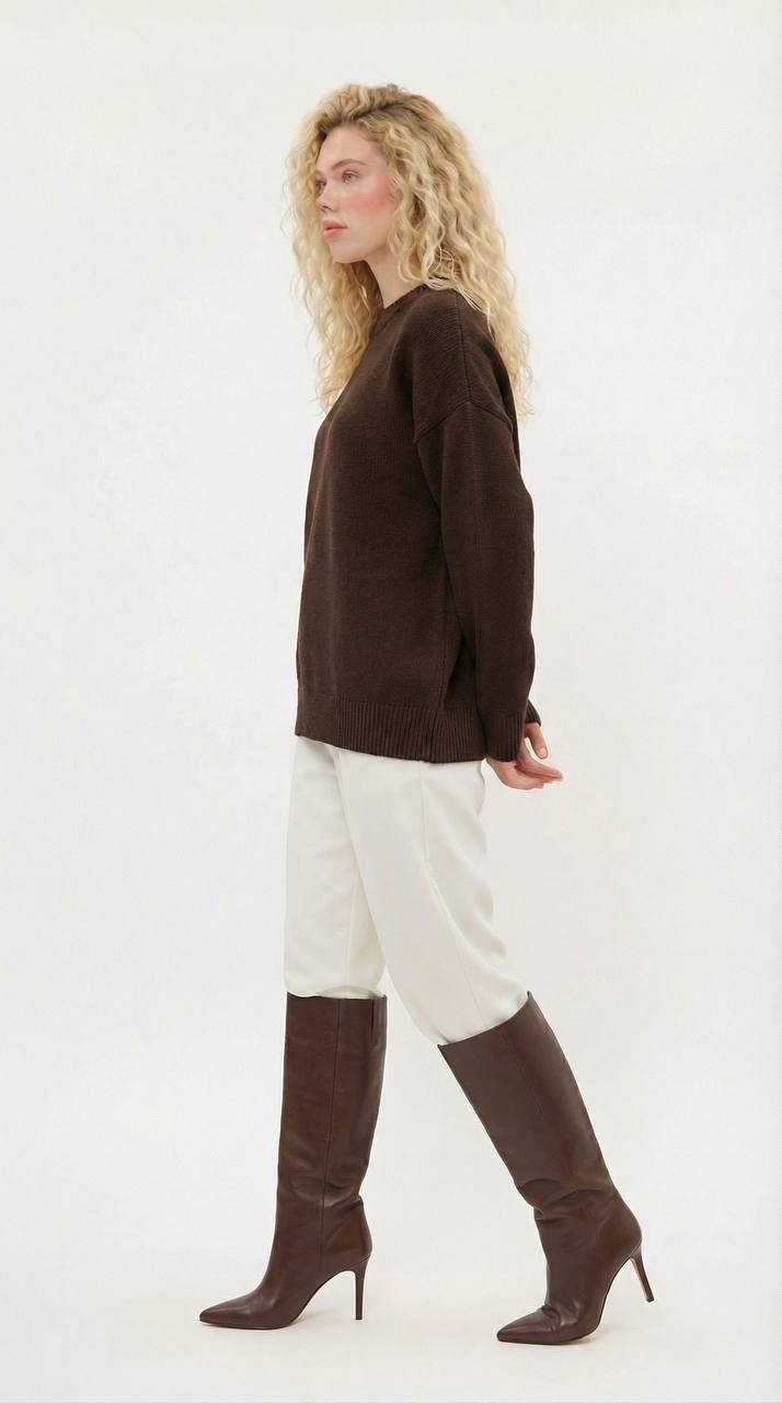 Базовый свитер "Cocoa Brown" - ваш идеальный спутник в ежедневной жизни! Свободный прямой силуэт подчеркивает элегантность образа, а круглый вырез добавляет утонченности. Мериносовая пряжа с акрилом обеспечивает мягкость, тепло и комфорт, при этом материал долговечен и отлично сохраняет форму. Гладкая текстура способствует легкости ухода и привлекательному внешнему виду изделия долгое время. Свобода движений, уют и стиль – все это сочетается в одном изделии.